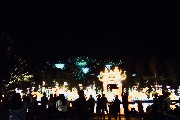 Eines meiner Highlights- und es fällt mir wahrlich nicht leicht das zuzugeben- waren die Gardens by the Bay. Abends fand dort die Mid- Autumn Lightshow statt und es war wirklich magisch. Es war ein Ausflug in einen absolut unwirtlichen Ort, eine Art Parallelwelt- friedlich und paradiesisch. Fledermäuse fliegen umher, Frauen in traditionellen Gewändern tanzen zu unbekannten Klängen. Danach ein Feuerwerk aus Lichtern in den Bäumen, das ganze Spektakel untermalt mit sanfter Musik.