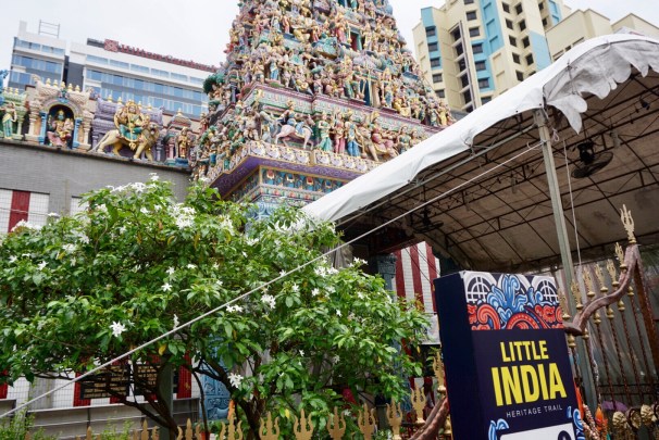 Alle Schilder sind in vier Sprachen: Tamil, Malaiisch, Chinesisch und Englisch.