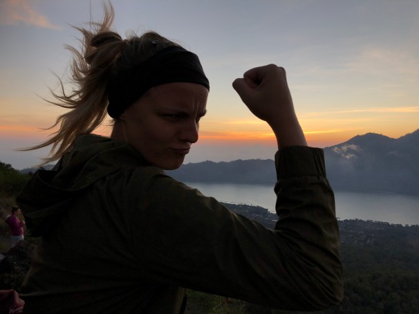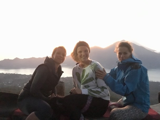 Als in der Nacht der Mond am Himmel und die tiefste Nacht in ihrer Blüte stand, warteten drei frisch gebackene Yogalehrerinnen um zwei Uhr morgens auf ihren Fahrer, der sie zum dramatisch genannten „Basecamp“ des Mount Batur bringen sollte.
