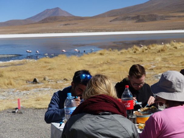 Mittagessen mit Flamingos