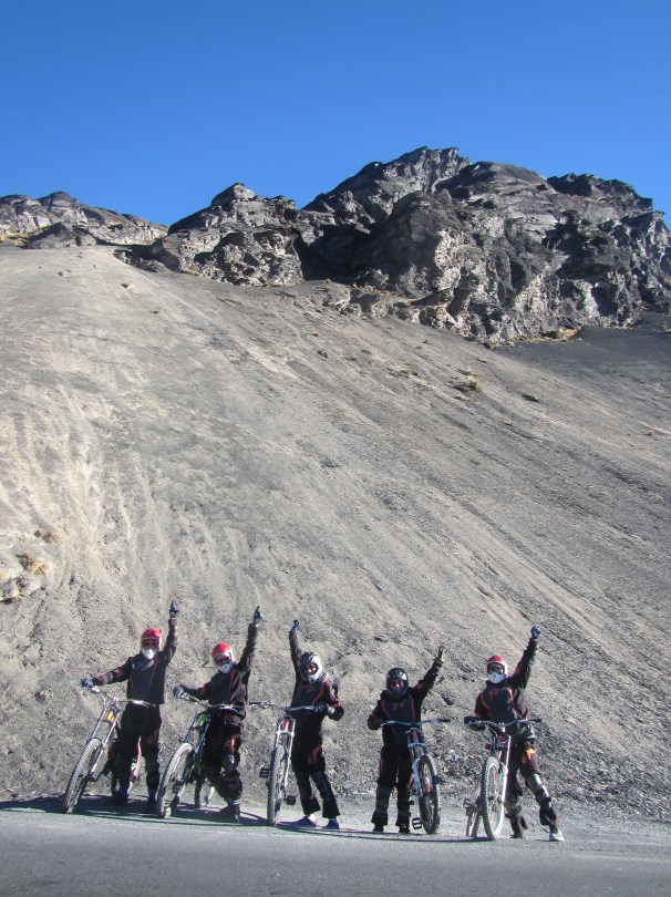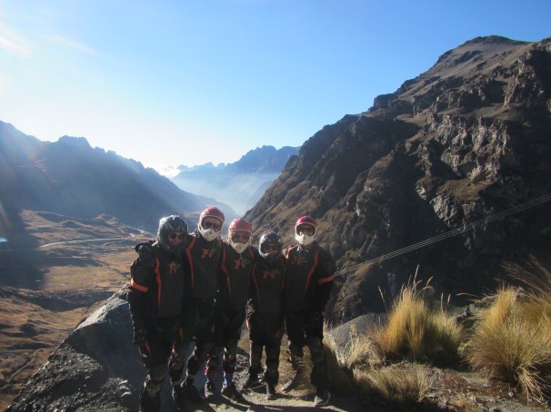 6:45 Uhr: Fünf waghalsige Europäer, darunter vier Briten und ich, und ein Guide, ohne den wir das Ganze wohl nicht so verletzungs- und unfallfrei überstanden hätten, machen sich auf den Weg zum Startpunkt der Todesstraße.