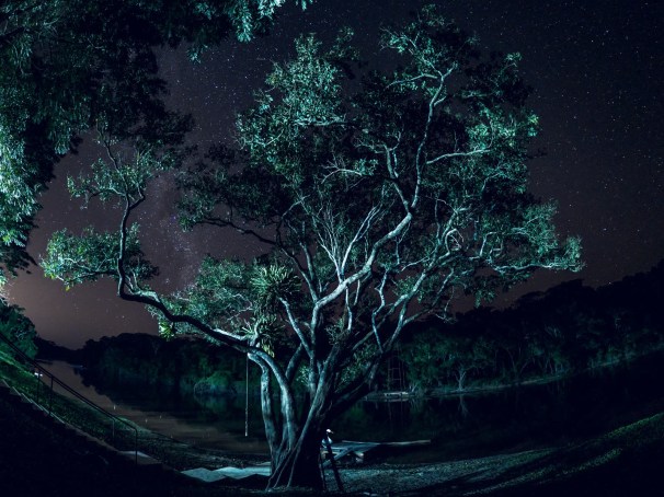 Nach einem köstlichen Abendessen hüpften wir nochmal mit Efrem und einer Taschenlampe ins Boot, um bei einem nächtlichen Ausflug in die stockfinstere Lagune die Bewohner bei Nacht zu beobachten. Die Augen der Alligatoren leuchteten im Pegel der Taschenlampe rot.
