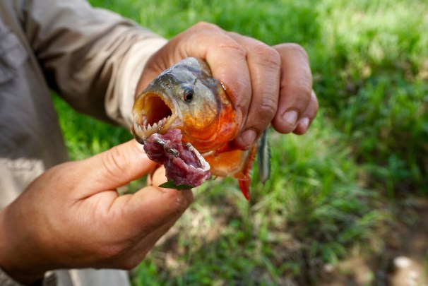 Während meine Begleitung sechs Piranhas angelte, habe ich munter den Affen in den hohen Bäumen beim Klettern zugesehen und sogar einen Alligator entdeckt. Einen Piranha habe ich dann sogar auch noch gefangen, aber direkt wieder in die Freiheit entlasssen.