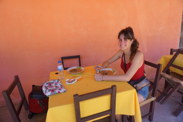 Beim Mittagessen erkläre ich der Señora, dass ich gerne das gleiche wie Karla hätte, nur eben ohne Fleisch. Daraufhin schaut sie nicht einfach verdutzt, sondern wiederholt mich auslachend meine Aussage. Ja, hier kommen wohl wirklich keine Touristen vorbei. Dafür war unser menu del día für 10 Bolis, umso leckerer.