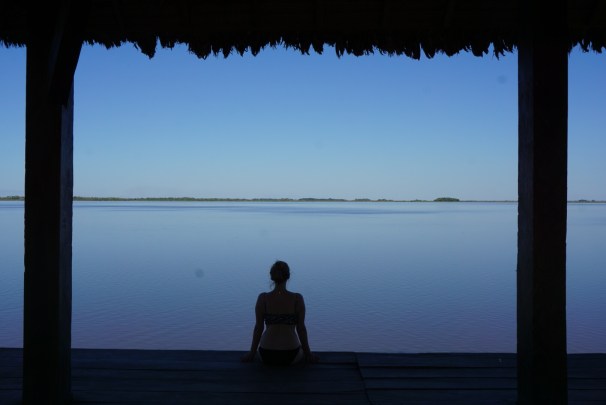 Wir flitzen zu einer blauen Lagune, verbringen den Tag dort am Steg in der warmen Sonne, gehen sogar baden.
